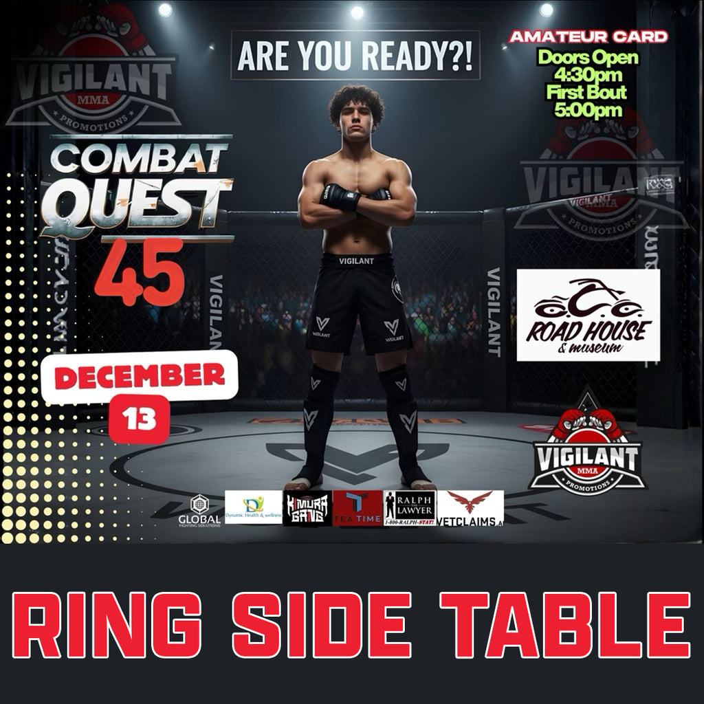 Vigilant MMA & Road House Nation Presents: Combat Quest 45 - 12/13/25 - Ring Side Table for 8